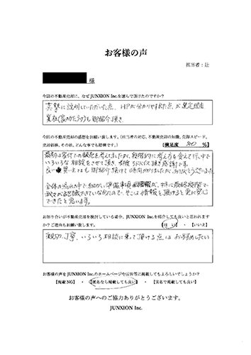 H様、大切な資産である不動産の売却を任せていただき誠にありがとうございました。